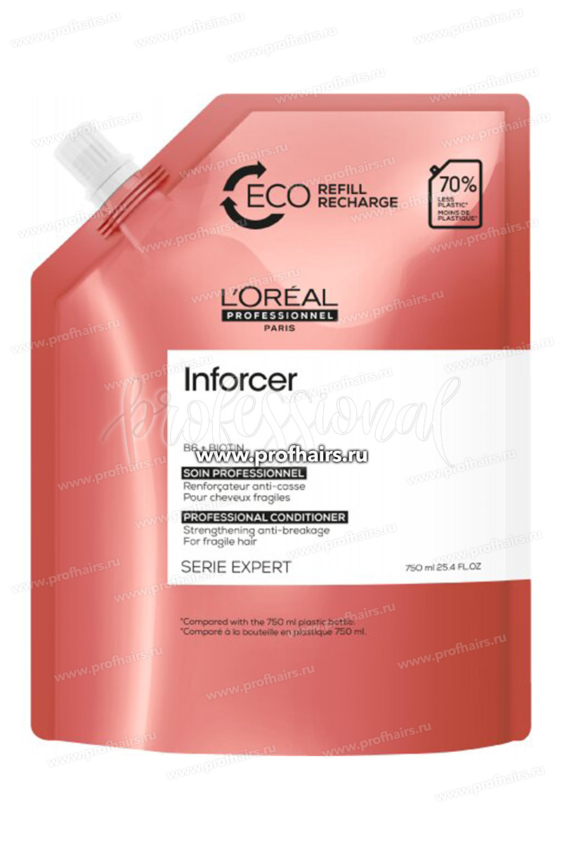 Кондиционер Inforcer восстанавливает волосы, подверженные частому механическому воздействию: тугие резинки, жесткие щетки, горячие инструменты. Укрепляет, сокращает ломкость, увлажняет и придает блеск. Комбинация витамина B6 и биотина укрепляет структуру волос по всей длине. Результат -- снижение ломкости, сияние и эластичность. Совет эксперта: во время нанесения смываемого ухода перекрутите кончики волос для более интенсивной работы средства.